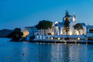 Στη συνέχεια θα αναχωρήσουμε για το Πόρτο Χέλι, το παραθαλάσσιο θέρετρο της Αργολίδας, γνωστό για τα όμορφα νερά, το φυσικό λιμάνι και την κοσμοπολίτικη ατμόσφαιρα. Ο οικισμός είναι χτισμένος γύρω από ένα κλειστό φυσικό λιμάνι και η εικόνα του παραπέμπει σε νησί, καθώς παντού θα δείτε αραγμένες ψαρόβαρκες. Το Πόρτο Χέλι έχει αποκτήσει παγκόσμια φήμη τόσο για τις πευκόφυτες εκτάσεις του όσο και για τις καθαρές ακτές του που δημιουργούν μία εξωτική εικόνα. Είναι μία περιοχή με μακραίωνη ιστορία. Κατά την περιήγησή σας στο Πόρτο Χέλι θα δείτε τα ερείπια της Ακρόπολης των Αλιέων, ενώ στον πυθμένα της θάλασσας βρίσκονται τμήματα από τα τείχη του αρχαίου λιμανιού και του ναού του Απόλλωνα. Ο πεζόδρομος πάνω από τον οποίο υψώνεται η ωραία εκκλησία της Ευαγγελίστριας συγκεντρώνει τα καφέ-μπαρ και τα εστιατόρια του οικισμού, και το βράδυ είναι το επίκεντρο της διασκέδασης.